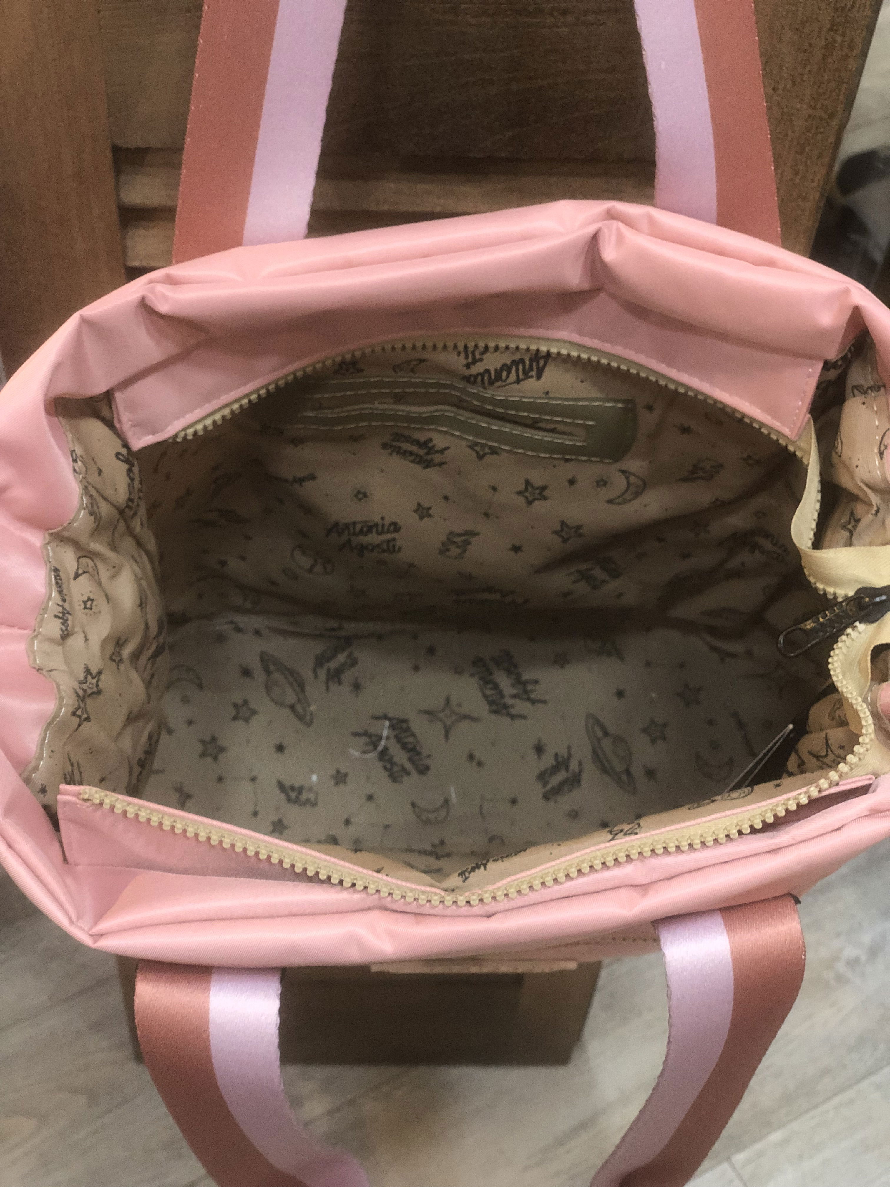 Este bolso es ideal para la facu, el gym o incluso para tus dias informales. Se ingresa con cierre, cuenta con bolsillo delantero con cierre, bolsillos a los costados, por ejemplo para botellita o vaso termico. Ademas tiene un bolsillo interior para el celu. manijas para colgar al hombro